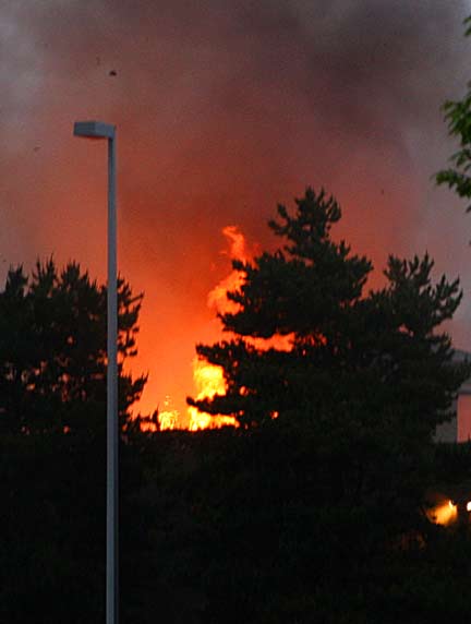 See our exclusive photos of flames licking into the sky along NE Sandy Blvd., as  firefighters did their best to save the complex owned by, and which provided the meeting space for, the Eastside Foursquare Church.  And, discover why one of their pastors looked so calm on TV as this story was reported …