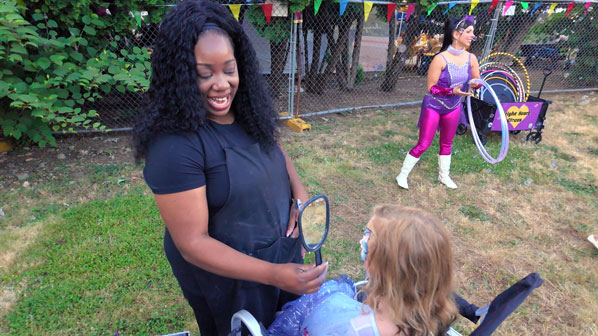 Showing another child her new look is Celeste Williams with Mystique’s Fancy Faces.