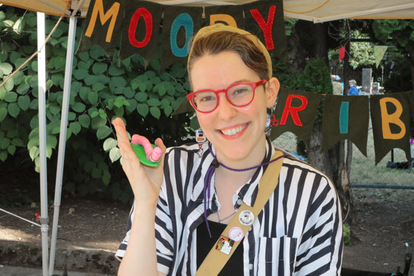Showing off her creation, a ‘Ring Worm’, is artisan Taylor Moody of Moody Scribbling.