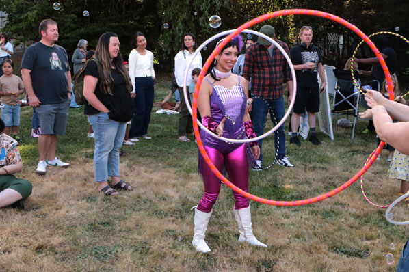 Getting both kids and adults to “do the hoop” is Kendall Rae with Bright Heart Circus.