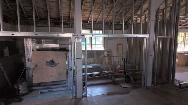 When it opens in September, this building will have modern, but period-looking, lighting, as well as a refinished maple wood floor. And it will feature a new entry stairway, and a front ADA-approved ramp.