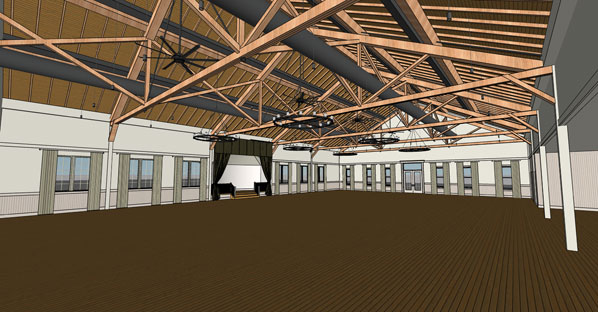 It started out as a roofed but open-air dance pavilion with a bandstand at the north end. “Having been built in 1905 it’s one of the oldest buildings on our property,” MacKay described.