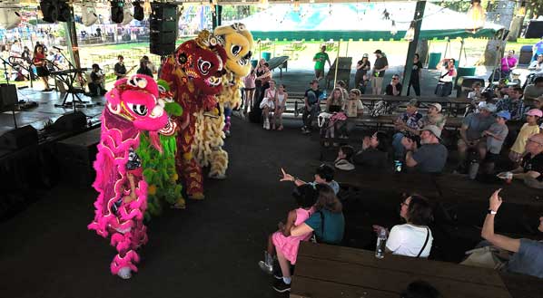 Members of the White Lotus Foundation Lion Dance Troupe bring lively energy to the opening of the Fair.