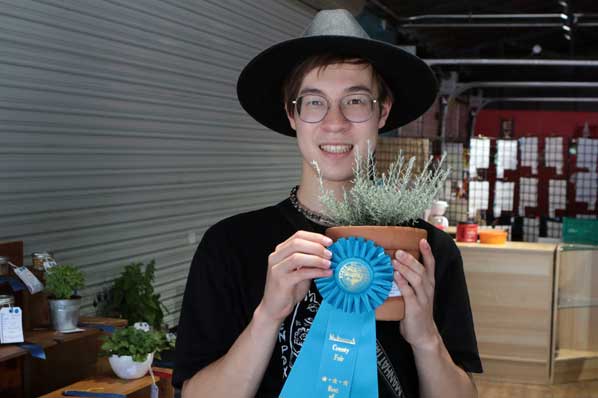 Here’s the Creative Living Exhibition’s “Best of Show” winner: Cleveland High School senior (and Valedictorian) Andrew Kobus, showing off his Blue Ribbon entry – a curry plant.