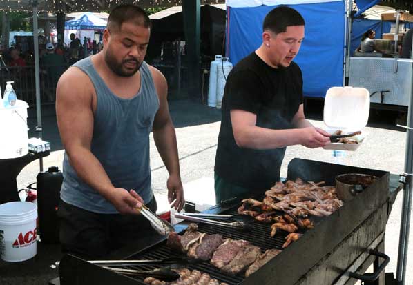 Hungry Fair-goers are lining up for fresh-grilled food at Juicy JV’s Wings booth.