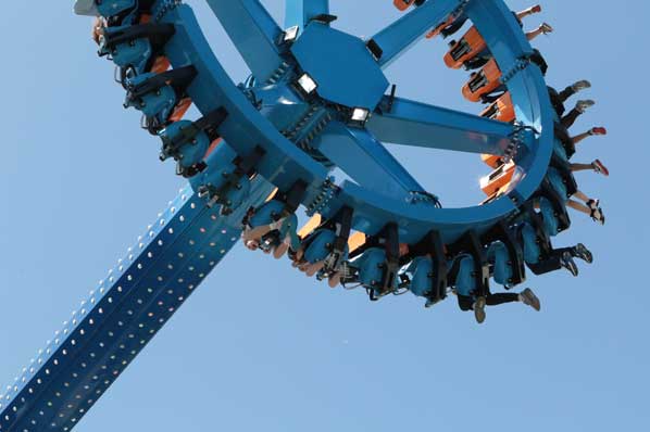 Many visitors to the Fair take the opportunity, out on the Fairway, to experience The Oaks’ thrill rides – such as “AtmosFEAR”.