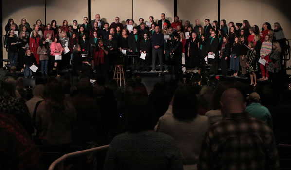 Almost every seat of the Parkrose High School Theater is filled as this year’s revived ‘Home for the Holidays’ concert, dedicated to save the school’s choir program, begins.