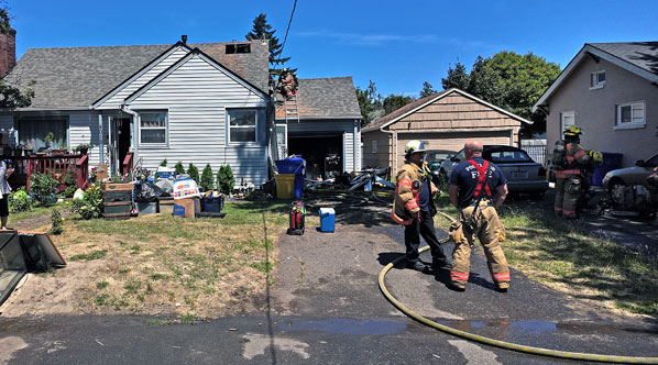 It wasn’t fireworks that set ablaze the garage of a Brentwood-Darlington house on July 5th – in fact the cause has not yet been made public – but a potentially incendiary interaction between residents took place nearby, causing Portland Fire & Rescue (PF&R) crews to call for “backup” from Portland Police Bureau East Precinct officers. More about that coming up.
