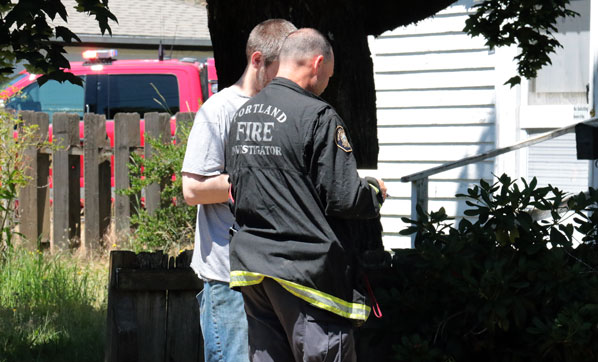 Upon his arrival, a PF&R Investigator speaks with a residence of the house.