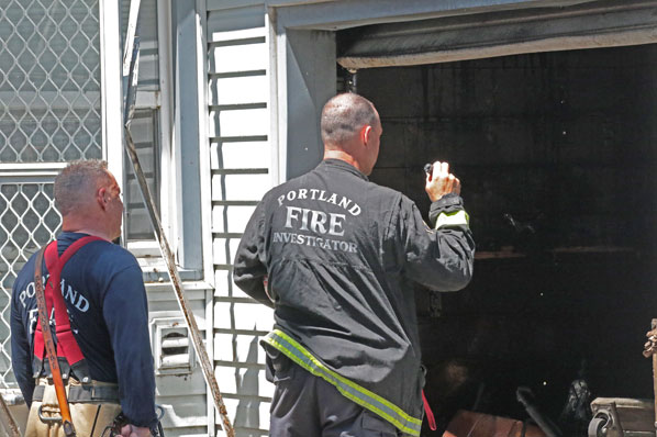 The PF&R Investigator begins to examine the interior of the charred garage.