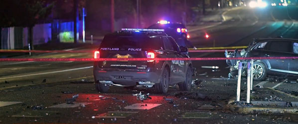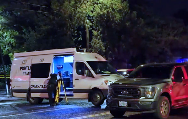 The Portland Police Traffic Division Major Crash Team arrives to investigate this fatal crash.