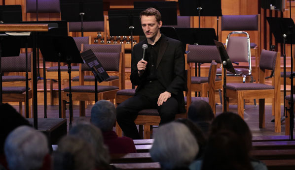 During his “Pre-concert Talk”, SSO conductor Jonathan DeBruyn takes questions from the audience about the afternoon’s musical selections.
