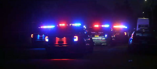 Minutes after a shooting in the Powellhurst-Gilbert neighborhood, SE 125th Avenue begins to fill with Portland Police Bureau patrol cars. Image courtesy of KGW-TV News 8