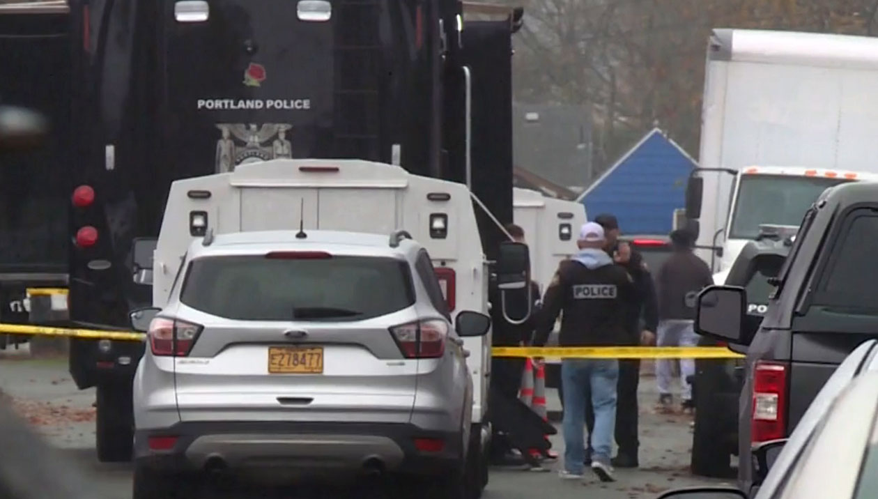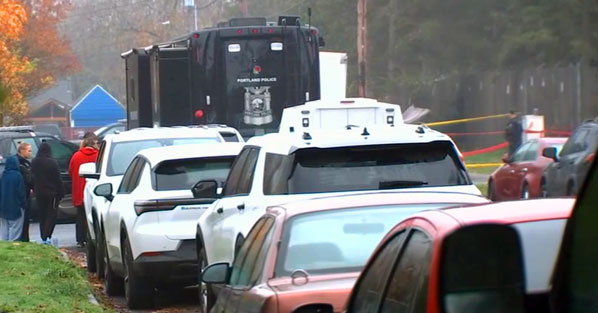 As day breaks, and heavy rain continues to fall, detectives from the Portland Police Homicide Unit respond to investigate the shootings, using their new Mobile Command Unit as their base. Image courtesy of KOIN-6 News