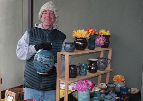 Happy to have a space at this year’s Brentwood-Darlington “Winter Market”, even though it’s outside of the Community Center, is local potter is David Cosloy of Pot On Ceramics.