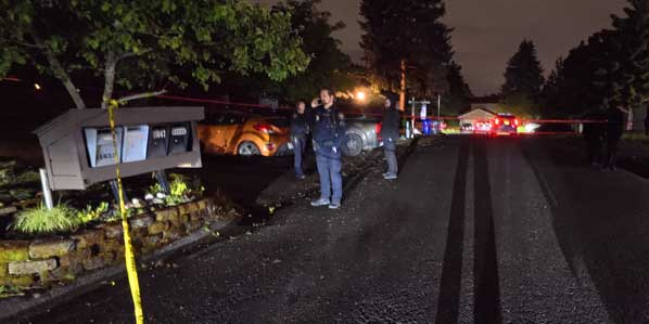 Our photograph taken from two blocks away, shows the staff from the PPB Forensic Division document the scene of the shooting.