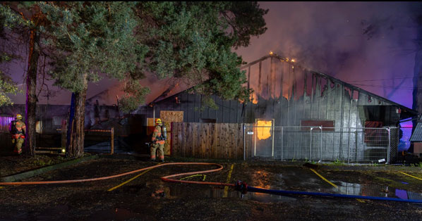 “The early use of ladder pipes enabled crews to save some of the structure from fire damage,” Graves told East Portland News. “Once they were able to control the fire, crews were sent inside with hand-held water hose lines, to ensure the fire [did not spread from] the single-story portion of the structure.”