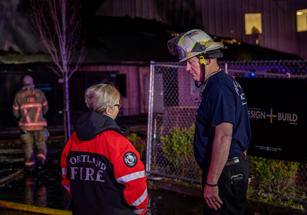 A late-night fire at what was about to open as an adolescent addiction recovery campus, just completing construction, drew a massive response from Portland Fire & Rescue (PF&R) on Saturday night. Crews battled flames bursting through the roof of a large L-shaped building.