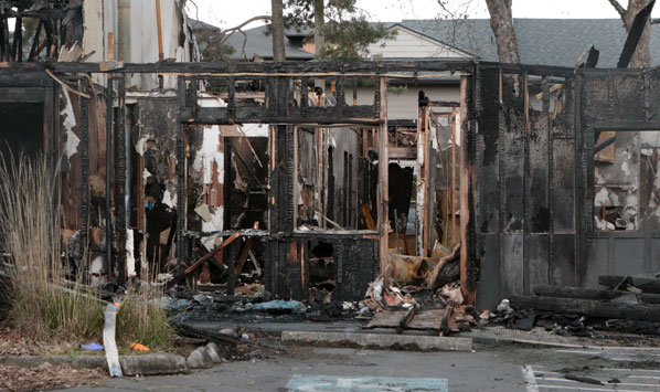 The morning after the blaze ripped through these buildings in the Gateway District of the Hazelwood neighborhood, all that’s left over is a shell of the newly-remodeled structure.