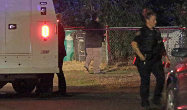A PPB Homicide Unit detective walks back to the house where the crimes took place.