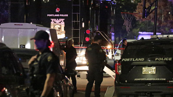 Portland Police Homicide Unit detectives, crime scene investigators, and officers investigate three shooting deaths in one house in the Brentwood-Darlington neighborhood.