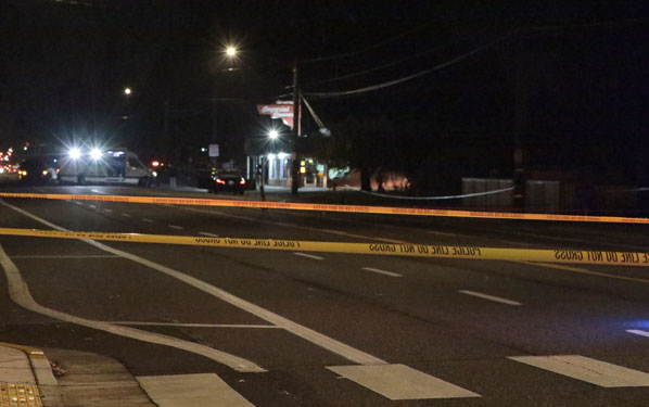 Adjacent to the empty parking lot of the shuttered Gateway Center Fred Meyer store, in the southbound lanes of NE 102nd Avenue, is where PPB officers and paramedics were sent at 7:58 p.m. to the third “injury accident” incident in just a bit over an hour on this one fatal night.