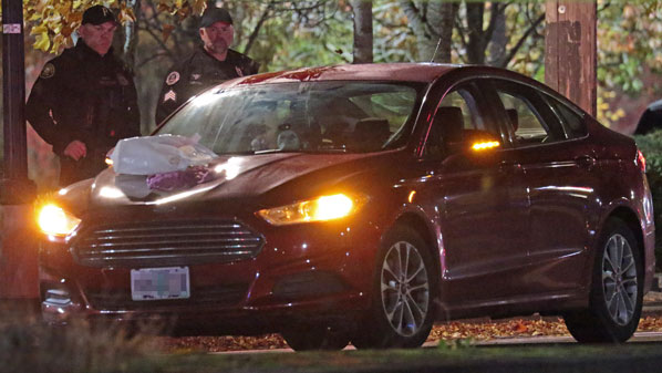 Damage to the hood and roof of this Ford Fusion confirms that it was involved in this “pedestrian struck” incident.