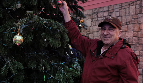 One of the many neighbors to hang an ornament on the Christmas tree is “longtime” neighbor Tom Dailey.