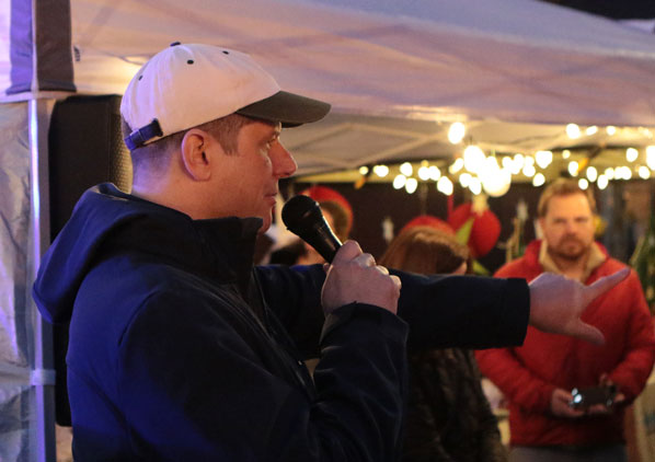 METBA President Neil Mattson, of Montavilla Guitar Studio, thanked sponsors — which included Burgerville, artist Marilyn Shawe, and Red Shed Christmas Trees, METBA’s Christmas tree merchant.