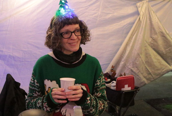 Keeping folks warm with hot cocoa is METBA Board Member Tina Granzo, of City Beautiful Design.
