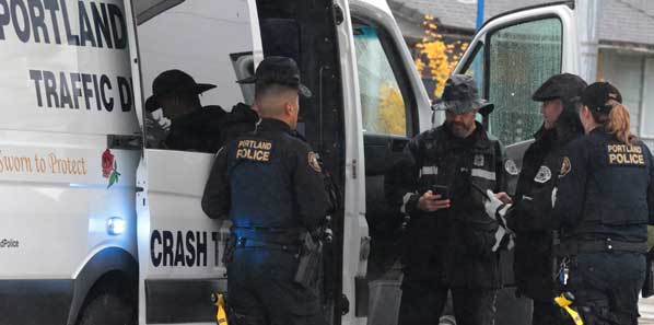 They didn’t know it at the time, but these Portland Police Bureau Traffic Division Major Crash Team investigators were gathering data about what turned out to be another pedestrian fatality.
