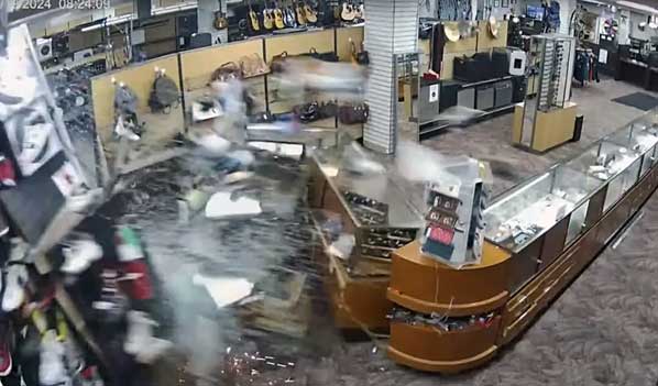 The front windows seemed to explode, and the merchandise displayed tumbled onto the sidewalk.