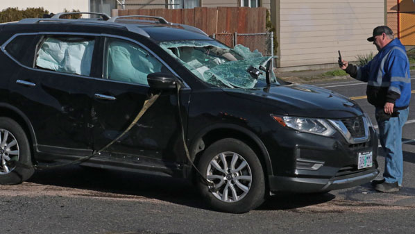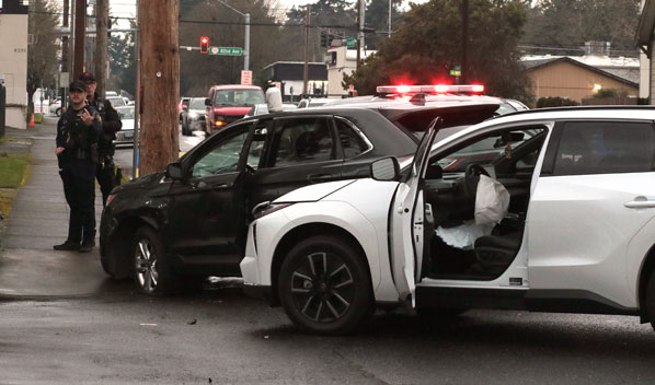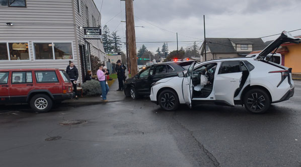 PPB East Precinct officers, and an ambulance, dispatched to this crash at 3:51 p.m., found two smashed SUVs in the southwest corner of the intersection.