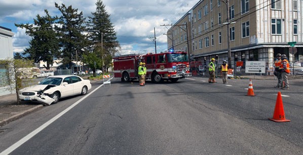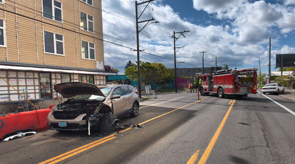 For a time after the collision, Portland Police Bureau (PPB) units had not yet arrived, leaving firefighters and construction workers to handle traffic control around the wrecked vehicles. That raised concern about what might happen if Engine 11 were called away to another emergency.