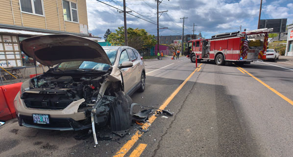 At 3:08 p.m., Portland Fire & Rescue (PF&R) Lents Station 11’s Engine Company was dispatched to the crash, and arrived within about two minutes.
