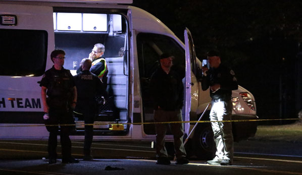 Setting for their investigation members of the PPB’s Traffic Division Major Crash Team look for evidence in this deadly crash.