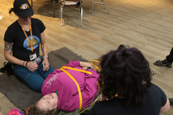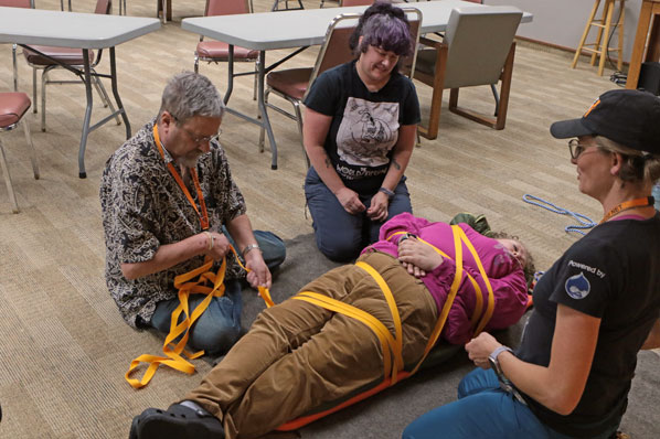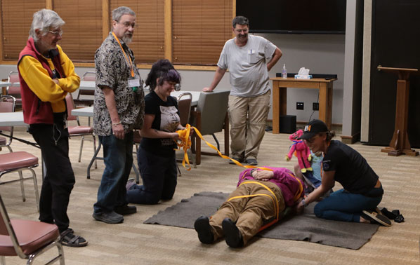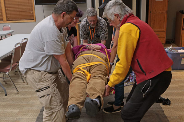 The skills NET volunteers learn go beyond helping in a major disaster – like a major earthquake, deadly weather, or a devastating fire – Hougey said. “By becoming skilled at this, we’ll be confident if we need to rescue somebody – or move them to or within a medical treatment area. Or, if we’re in the backcountry hiking with friends and family, we are able to more safely rescue and move around an injured person with the practical skills we have.”